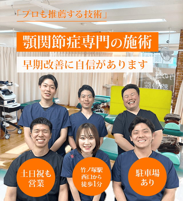 そこで当院では、マウスピースだけでは良くならない「顎関節症」に対して、姿勢や首の矯正を中心とした施術と、セルフケアの指導を行うことで改善・再発防止に導きます。